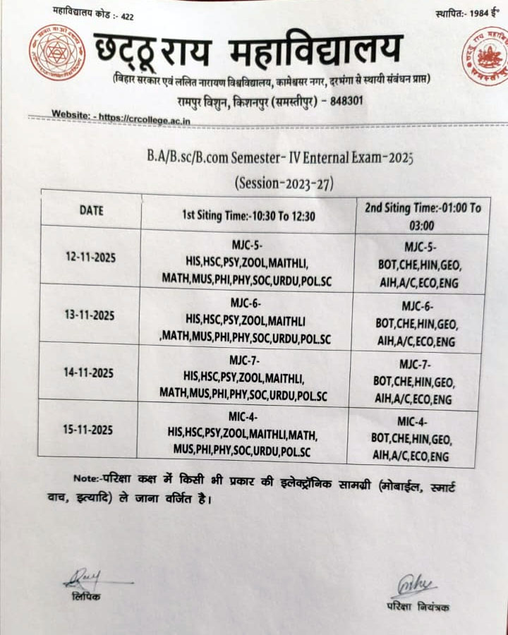 CR College, situated in the picturesque locale of Rampur Vishun, Kishanpur, Samastipur, stands as a beacon of academic excellence since its inception in 1984. Committed to cultivating intellectual curiosity and fostering holistic development, the college offers a vibrant learning environment that encourages critical thinking and innovation across diverse disciplines. Rooted in ethical principles and a strong sense of social responsibility, CR College equips its students with the knowledge, skills, and values necessary to thrive in an ever-changing world. With state-of-the-art facilities, dedicated faculty, and a supportive community, the college nurtures talent and promotes a culture of excellence. Over the years, CR College has earned a reputation for producing dynamic leaders, scholars, and professionals who contribute positively to society. As it continues to evolve and adapt to the needs of the times, CR College remains committed to its mission of empowering individuals to make meaningful contributions to the world.
